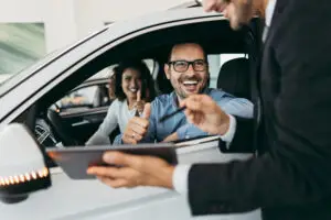 Middle,Age,Couple,Choosing,And,Buying,Car,At,Car,Showroom.