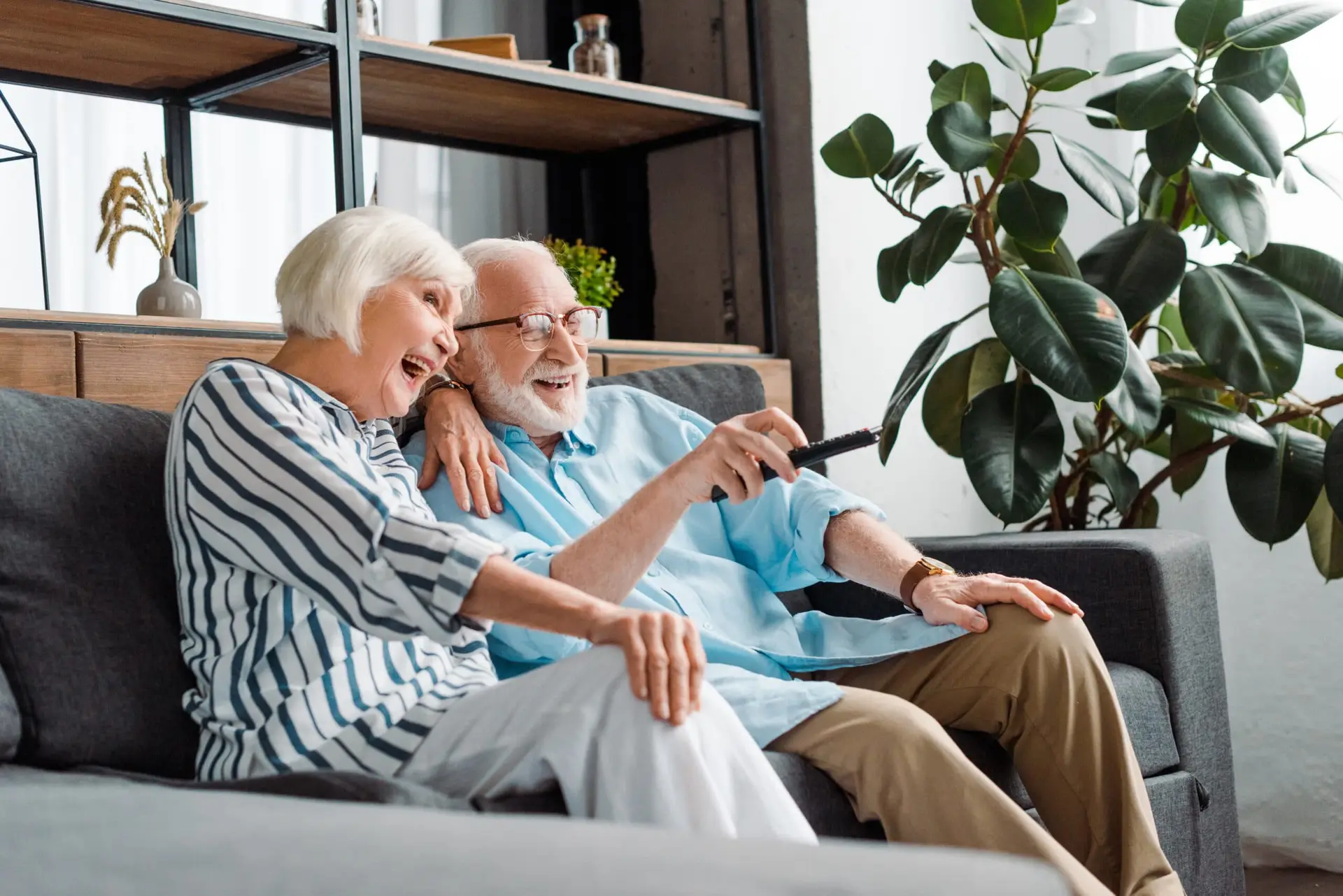 Seniors watching television marketing advertisements